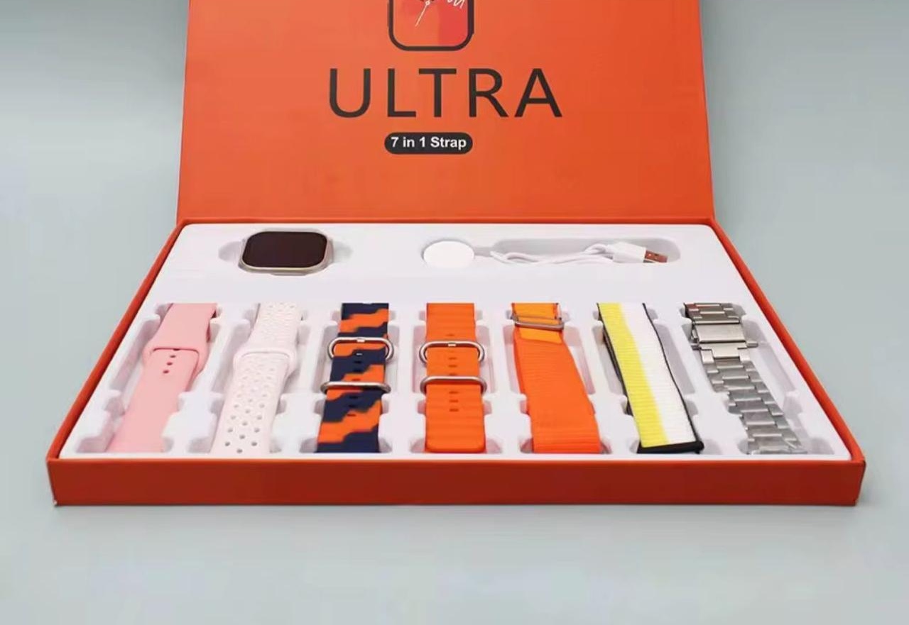 Experience the ultimate in smartwatch technology with the Ultra 7-in-1 Strap. This stylish and functional watch features a 2.01 Infinite Display, wireless charging, and 7 interchangeable straps. Stay connected with answering phone calls. Monitor your health and fitness with heart rate and more!